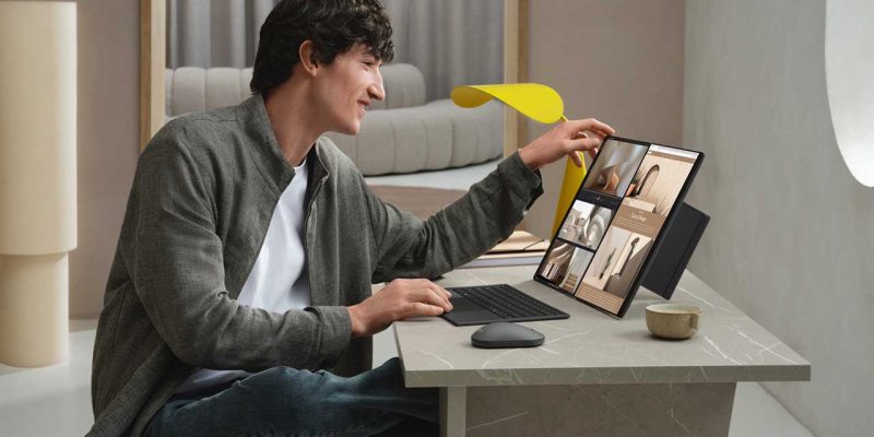 Önceki nesle göre yüzde 5 daha küçük bir kasaya sahip olan cihaz, seyahat halindeki profesyonellerin tüm ihtiyaçlarına yanıt veriyor. Yeniden tasarlanan entegre kickstand (destek ayağı) ve gizli menteşe yapısı, tüm kullanım modlarında sarsılmaz bir denge sunuyor. Cihazın güçlendirilmiş Bluetooth klavyesi, yeni MagLatch yerleştirme sistemi ve geri çekilebilir pogo pinleri sayesinde iki OLED panel arasına zahmetsizce ve güvenle yerleşiyor.